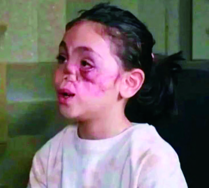 Little Hala is one of the victims of the recent massacre in Syria. Her entire family was murdered. She was shot in the face, and the bullet destroyed her nose, but it did not take her life. She is our precious little angel.